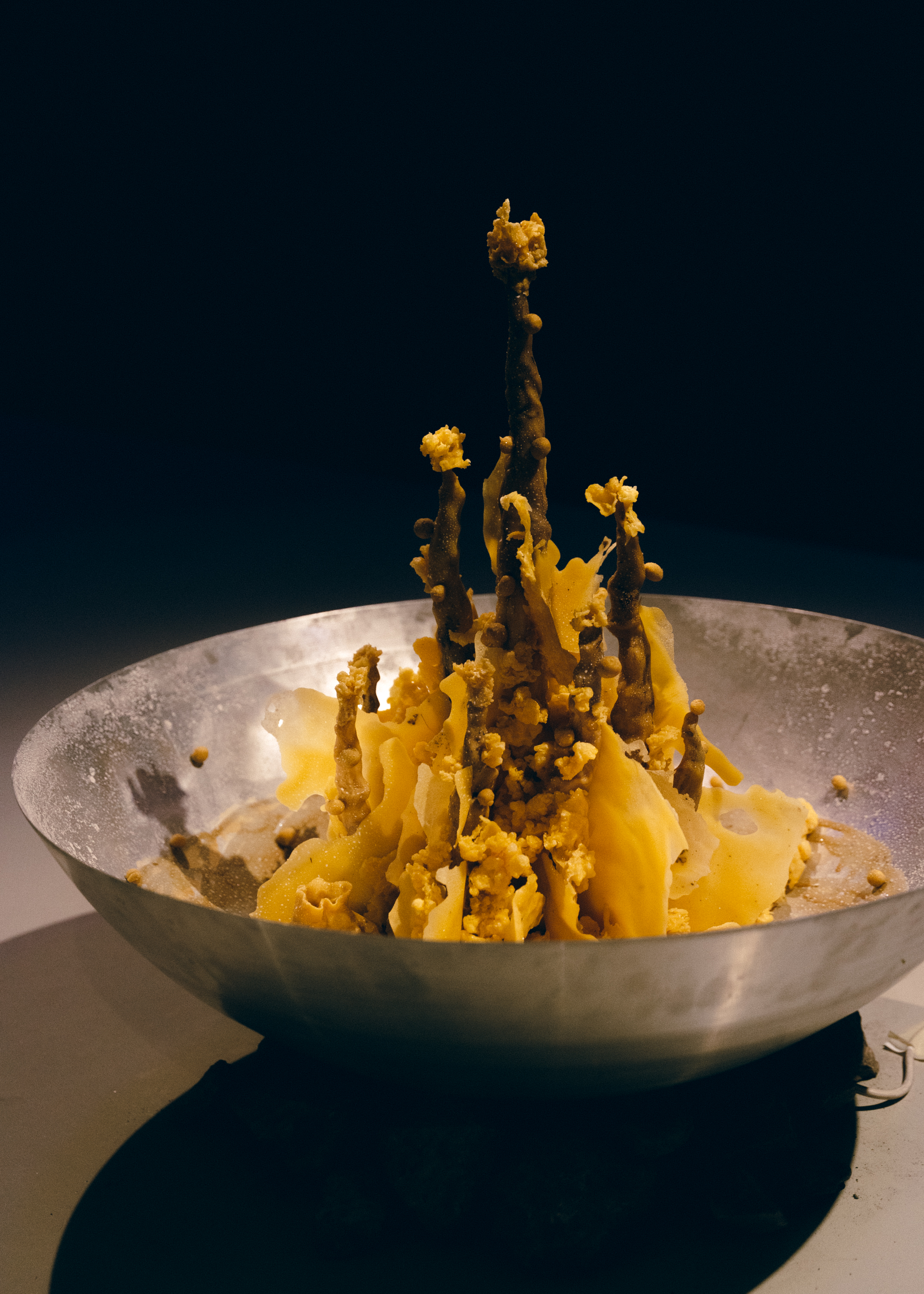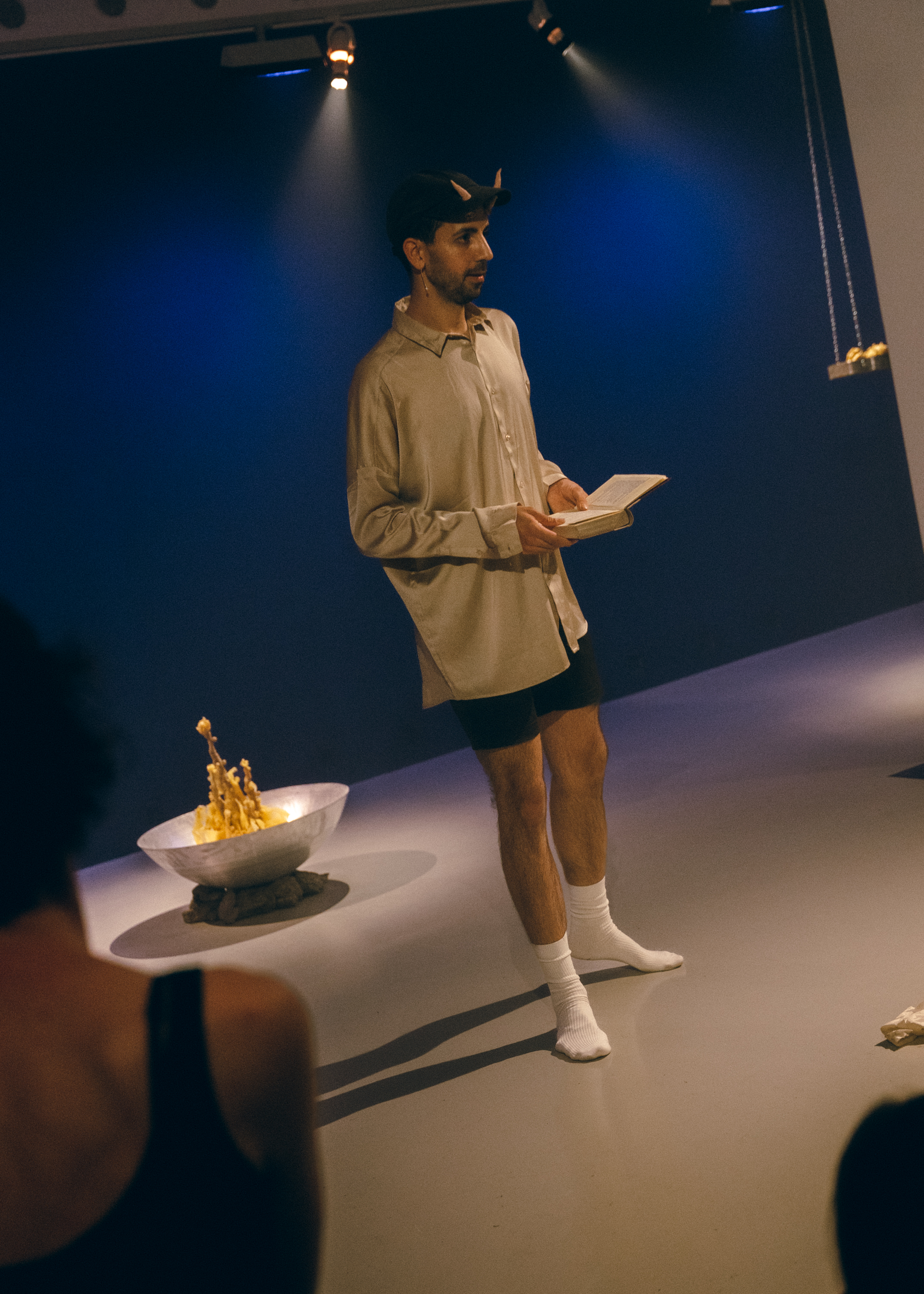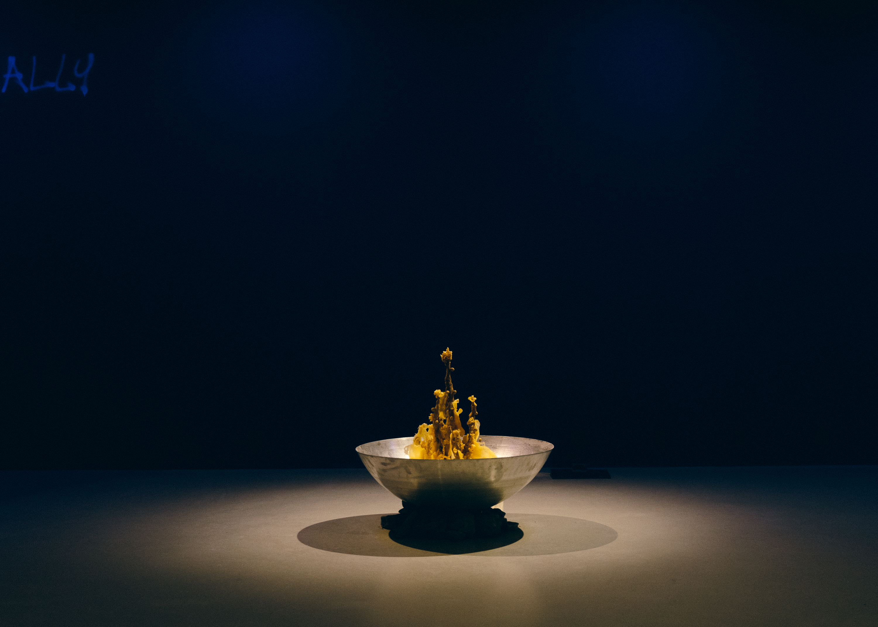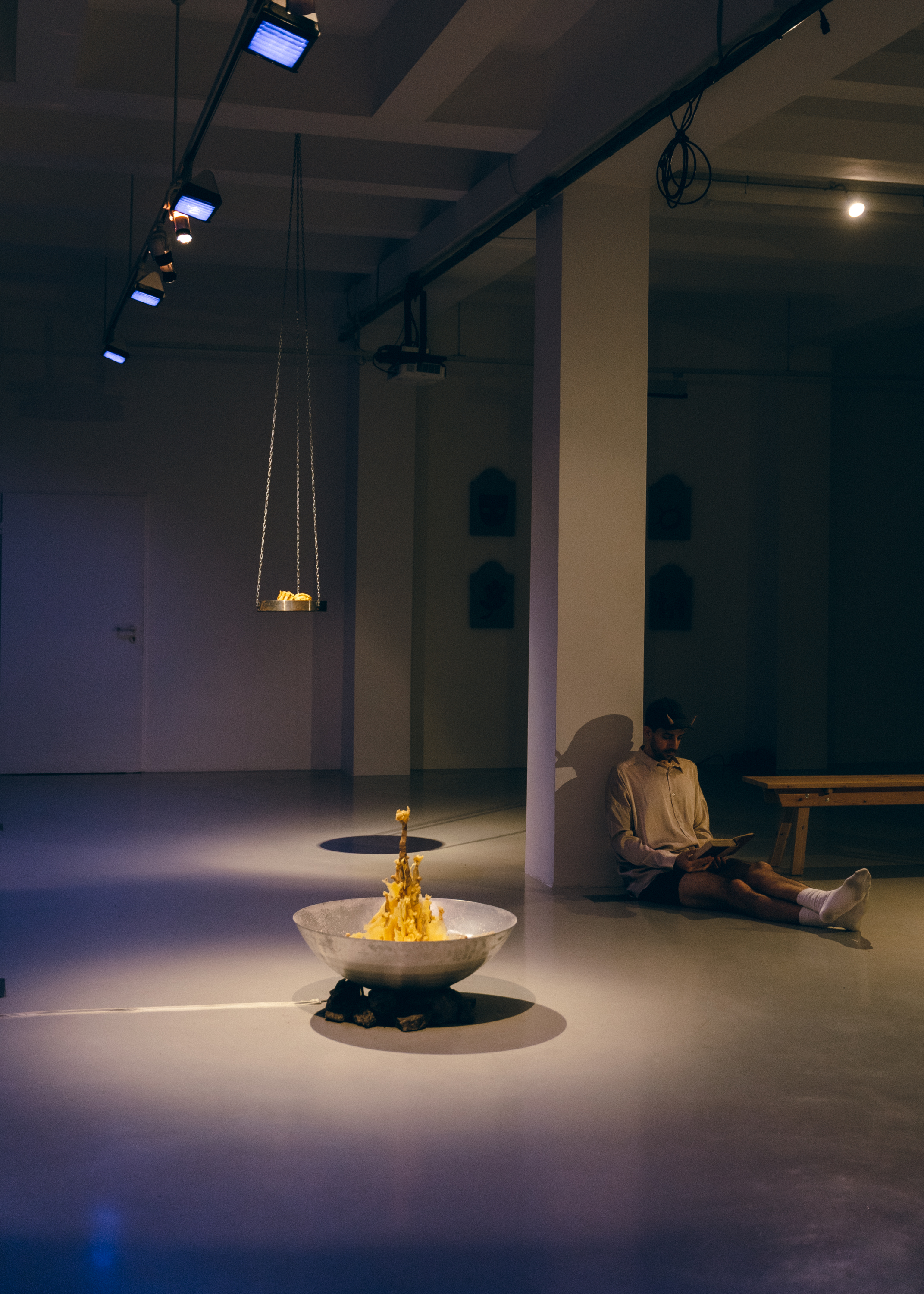 "I am going to tell you a lie, but I want you to believe it! Two days ago, at dawn, a spring of water emerged with irresistible force in the gallery. The hot steam of the hitherto latent thermal water finally escaped and filled the whole space. The intoxicating medium of minerals makes us all dizzy. In the billowing vapour, our boundaries blur, our rules become meaningless and dissolve. What are we left with? I am going to tell you a lie, but I want you to believe it! The water of the spring dried up. Instead, slowly but surely, pure essence is bubbling up. It's thick, hot, sticky, dark amber, dangerous and unleeching. Let us gather around it, since I tell you a lie, but I want you to believe it." (Gideon Horváth)